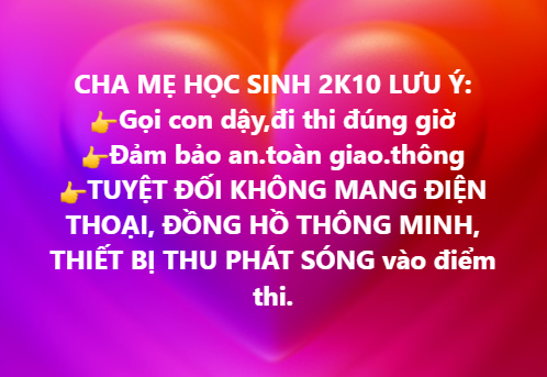 CHA MẸ HỌC SINH 2K10 LƯU Ý