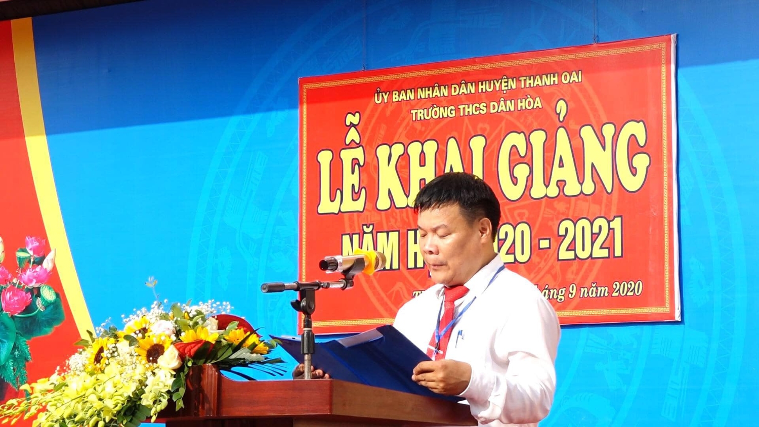 6 lượt xemCô Đặng Thị Thanh Huyền- Chủ tịch công đoàn trường dẫn chương trình của buổi Lễ khai giảng