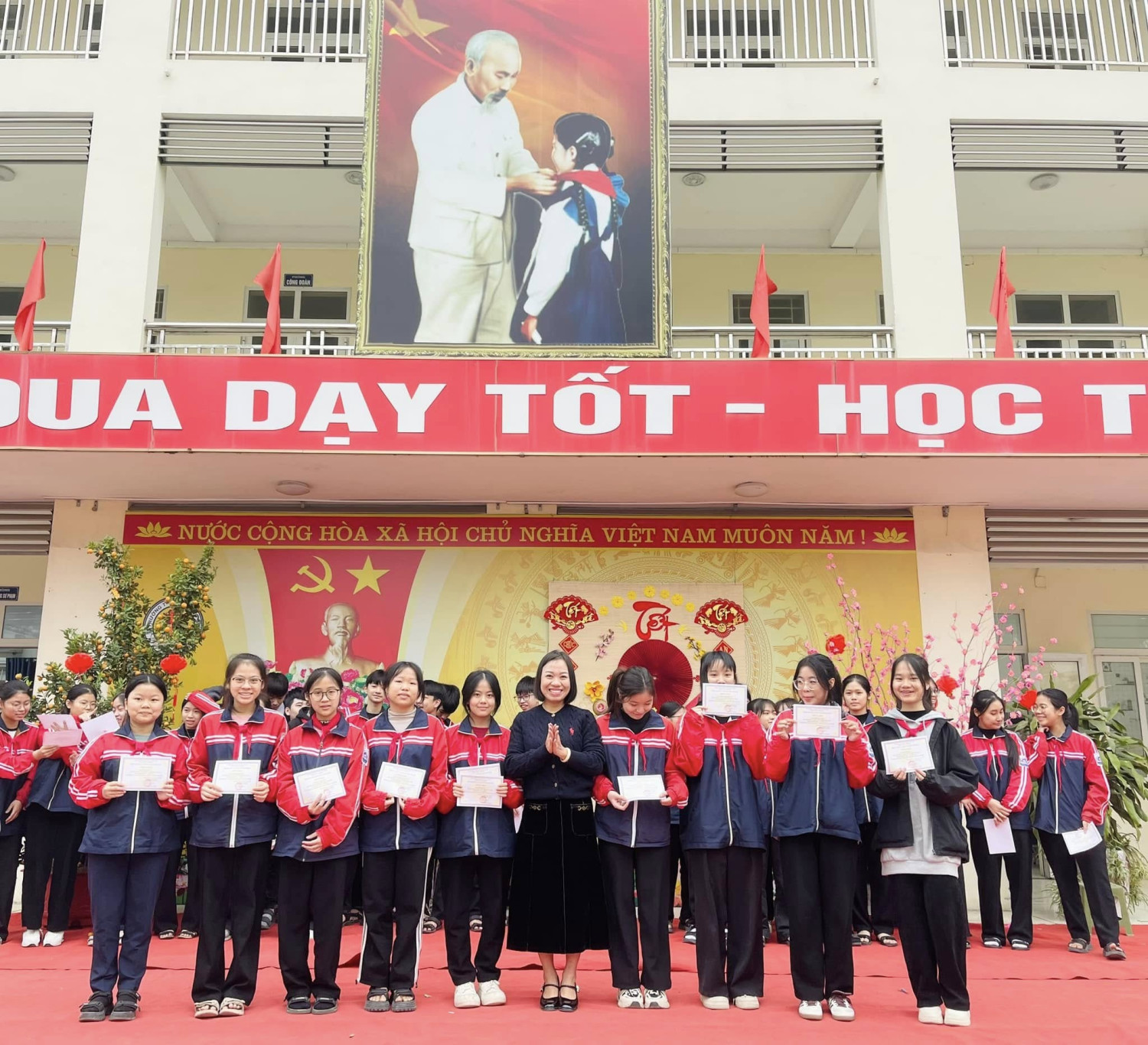 Sáng nay, ngày 20 tháng 1 năm 2025, trong không khí trang nghiêm của tiết chào cờ đầu tuần, trường THCS Nguyễn Đức Lượng đã tổ chức trao giấy chứng nhận cho 43 em học sinh đạt thành tích xuất sắc. Trong đó có 36 em học sinh lớp 9 được vinh danh với danh hiệu học sinh giỏi cấp huyện các môn văn hóa, cùng với 7 em học sinh đạt giải trong cuộc thi “Thầy cô trong mắt em.”
